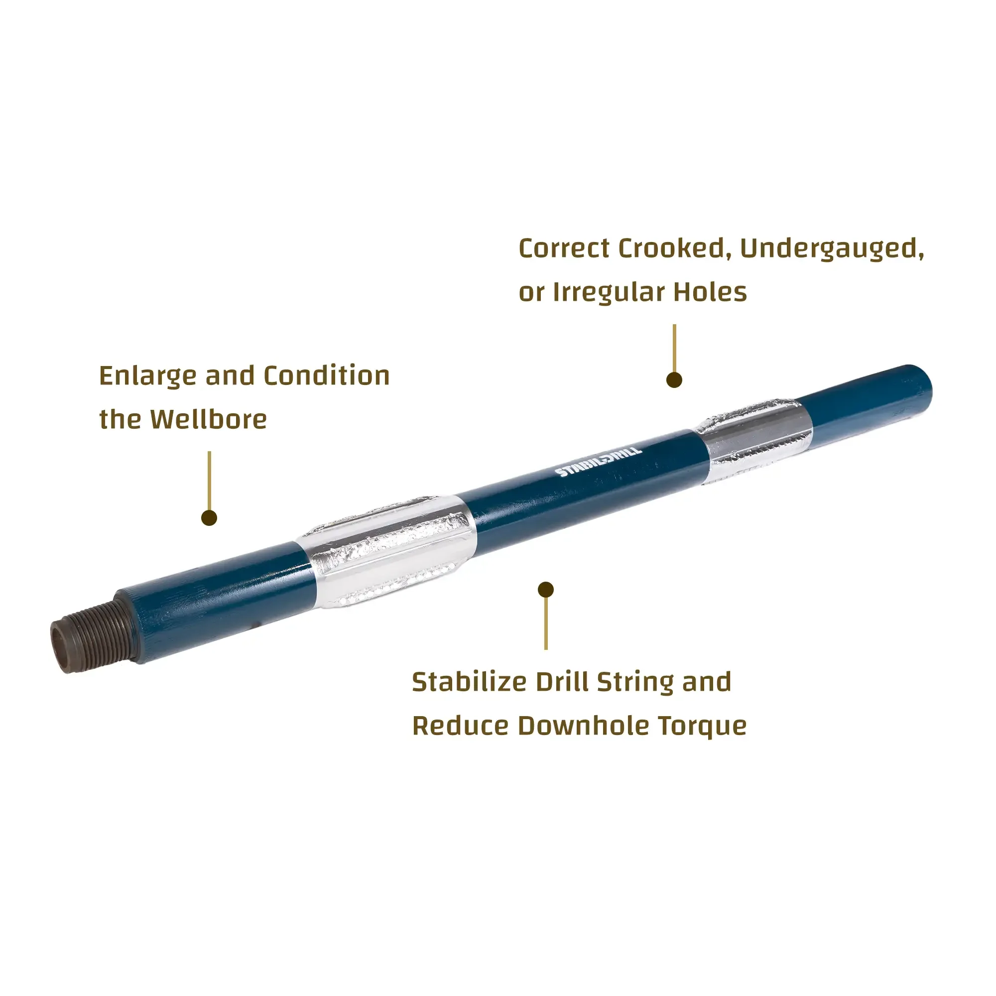Stabil Drill reamers are precision-machined in-house, and engineered to perform in any drilling condition. These downhole cutting tools enlarge and smooth out the drifts, correct crooked holes, restore under-gauged holes, and amend hole irregularities that could cause complications or delays.