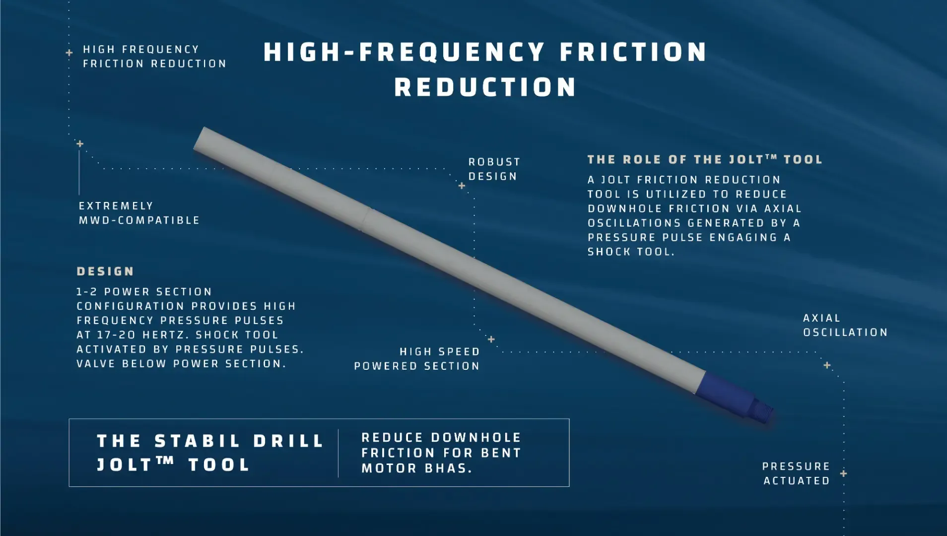 Friction can bring your oilfield drilling operations to a grinding halt. But JOLT uses a high-frequency pulse signature to create an axial oscillation along the drill string to unlock operational performance. Jolt is MWD-compatible and is engineered to increase steering efficiency, practical reach, and rate of penetration.