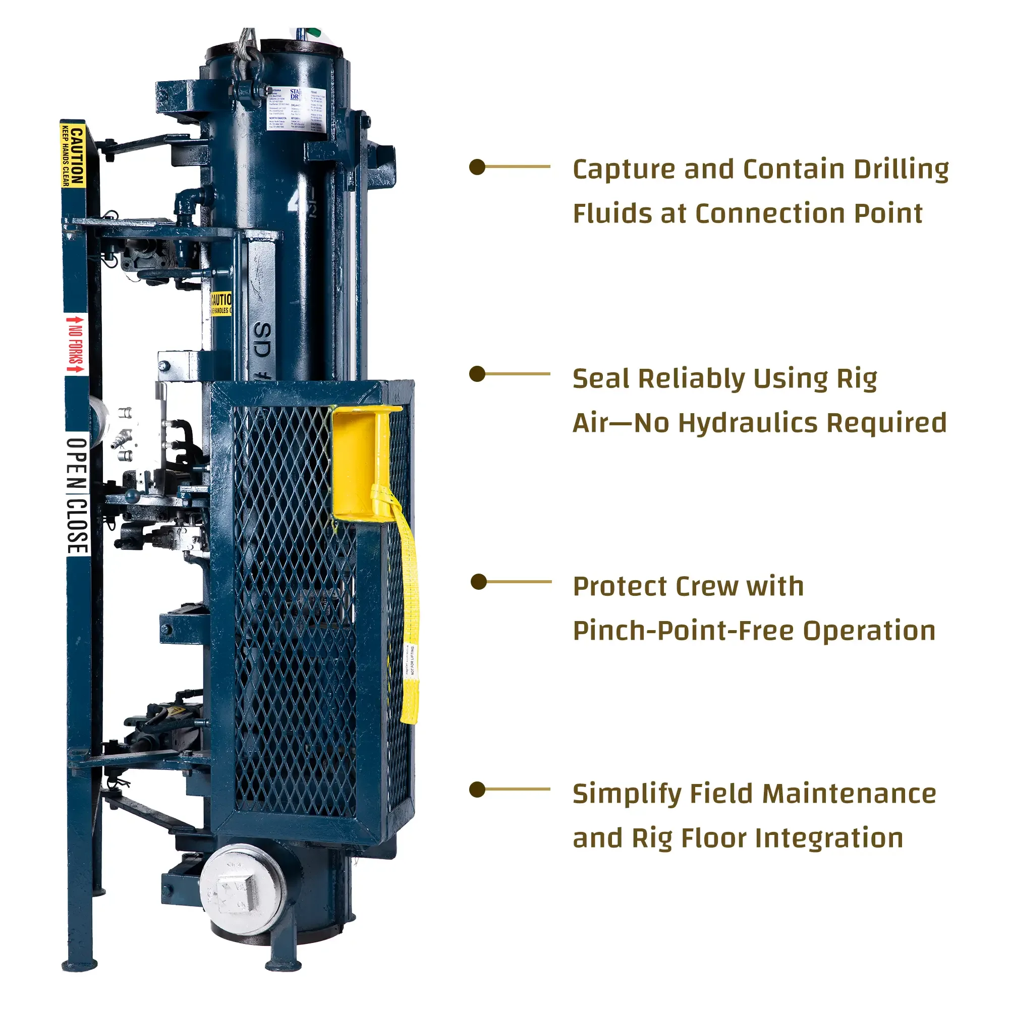 Mud buckets are a critical front-line tool in managing drilling fluids at the drill pipe—capturing fluids and redistributing them into the well site’s oilfield waste management infrastructure. Stabil Drill’s pneumatic mud buckets use rig air to seal the unit, avoiding leaks or spills.