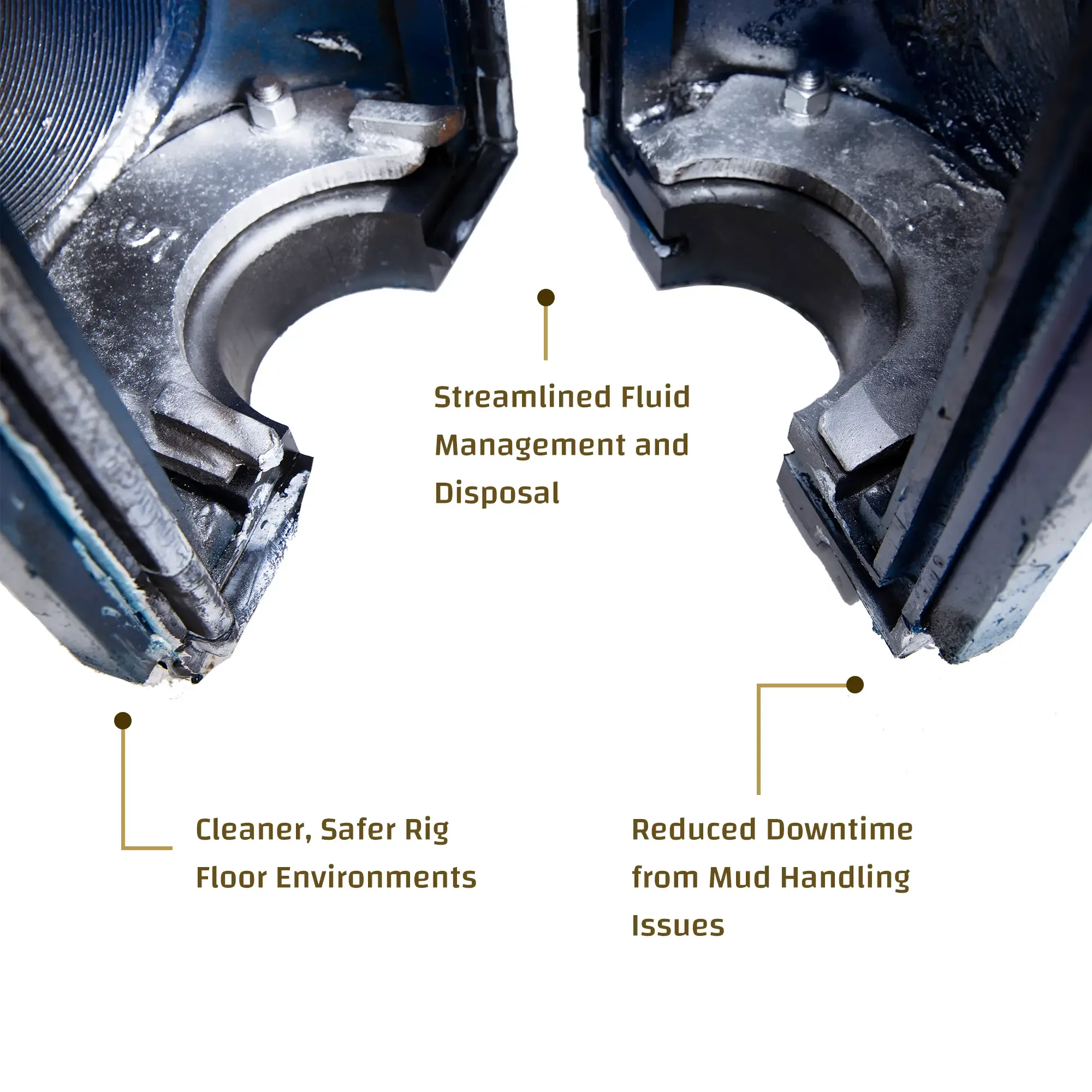 Our mud bucket is designed to protect your team and the environment while helping you save money. And our advanced pneumatic interlocking male and female seals are equipped with metal end bumper plates for added seal protection and extended seal life.